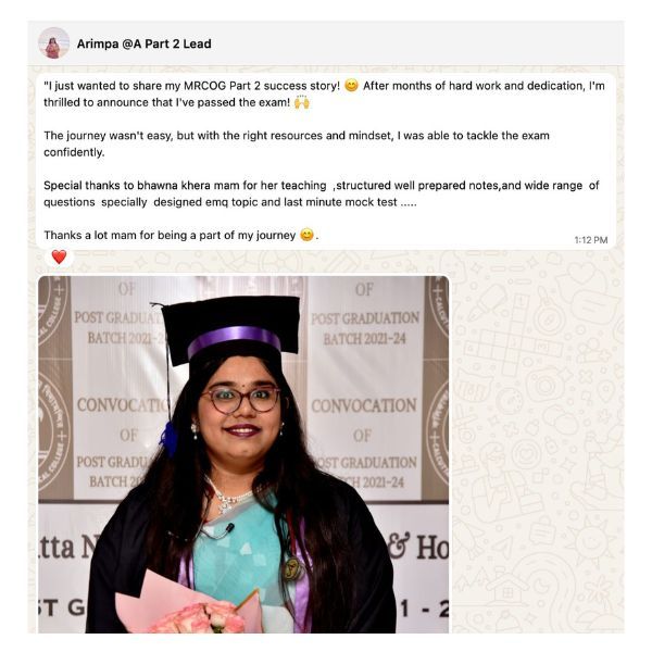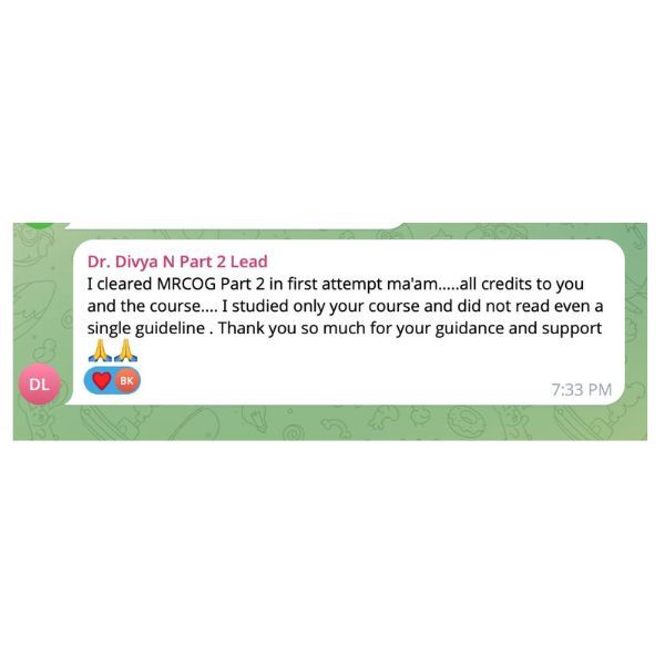 → Cleared MRCOG Part 2 with Bhawna Ma’am’s course.