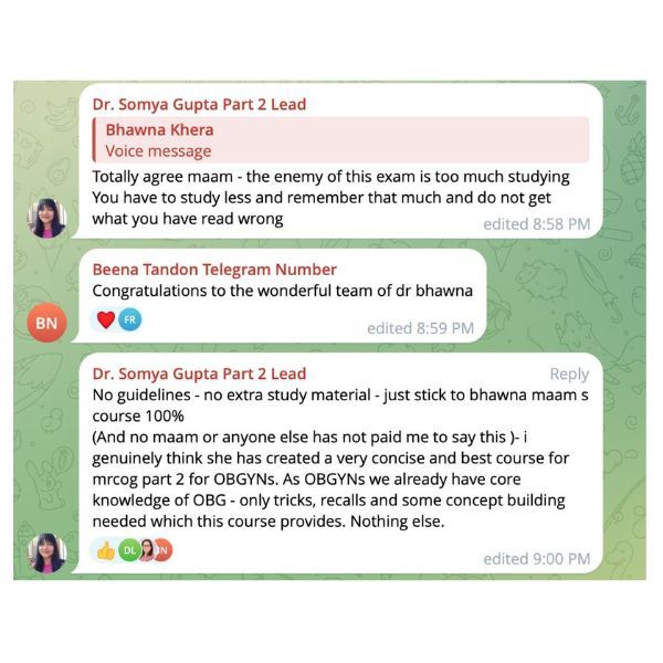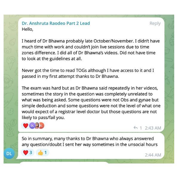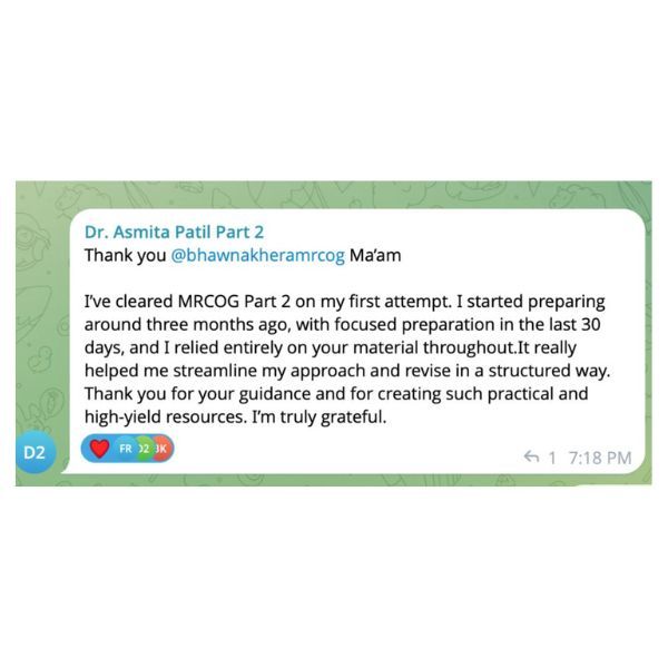→ Cleared MRCOG Part 2 using Bhawna Ma’am’s course.